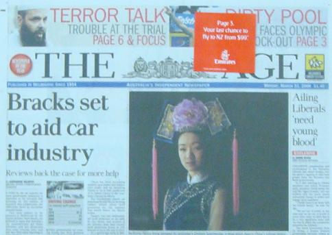 The one on the SMH was stuck to their special ‘Earth Hour’ wraparound, which of course tore as I pulled it off. I’m not sure that they’ll see the irony of one paid for advert destroying another one.