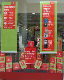 The Government owned Australia Post shop opposite our newsagency had a big display window promoting Vodafone installed late last week. It looks better in person than the photo shows. We are jealous of the professional looking window and the deal they must on to justify the space and stock investment.