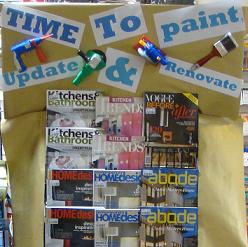 At our Frankston newsagency we are promoting renovation magazines at the counter. The stand carries twelve to sixteen different titles from the category – all titles which would not usually be promoted at the counter.The idea behind this type of display, besides selling magazines, is to showcase that we are a local business – as opposed to a corporate which does pretty and clinical display.