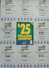Thankfully or Tattersalls machines are still running, they have not cut us off overnight as threatened. I say thankfully because OzLotto has passed the $20 million jackpot sweet spot and is now offering a first division prize of $25 million. We are actively promoting this through our house syndicates and regular tickets. Our promotion reaches beyond the Tattersalls defined area and across to our main newspaper display. Thankfully the newspaper publishers don’t threaten to cut us off it we promote other product in “their space”.