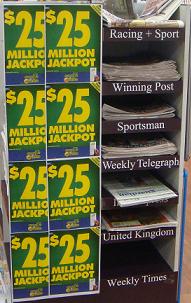 We have been promoting tonight’s OzLotto $25 million on one end of our newspaper stand (facing out to the mall), next to sports and racing newspapers.