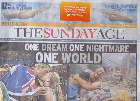 The post it note type ad for Simply Energy stuck on page one of The Sunday Age newspaper this morning covers promotion for their Olympics coverage. When I followed the instructions and lifted the ad it tore the page in half. While I am sure advertisers love these ads, they continue to damage editorial content.