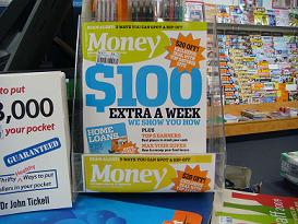 Money magazine and $100 a week ·October 11, 2008 ·Mark Fletcher ·0 Comments Money magazine from ACP is our feature magazine at the counter this week – for obvious reasons. The $100 extra a week pitch on the cover is a compelling comparison to the newspaper headlines of the day. 0 likes magazines Leave a Reply Cancel replyYour email address will not be published. Required fields are marked *Name * Email * Website Enter Code * Captcha Comment * Δ Post navigation Next ArticlePrevious Article