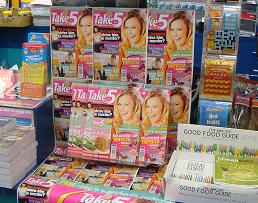 Take5 earned the prized counter promotional position this week with the free Spring Sensations cookbook which comes with the magazine. It was a tough call with several magazines offering free books. Take5 won because it and That’s Life respond exceptionally well to counter promotion – especially Wednesday through Friday. We’d expect to replace the display by late friday because we should be just about out of stock by then.
