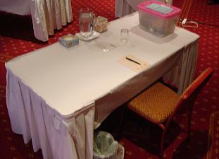 Outside of the usual extras we see provided for meeting rooms such as pads, pens, mints and water for attendees, a white board and one or two markers (which often don’t work), they provided a fully stocked stationery kit with a full set of working whiteboard markers, whiteboard eraser, tape, scissors, a spare power cord, stapler, pens pencils and a host of other items which could be useful during a conference. They also provided fire evacuation information on the presenters table – this is usually hidden on a wall – as well as a clean rubbish bin. They also had a clearly market central place where messages are left – so as to not interrupt any session.