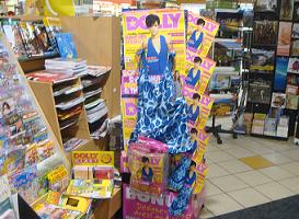 By using the back of the ACP basket builder stand to feature magazines we are able to locate the display close to where the target shopper usually browses. The display for the latest issue of Dolly is a perfect example of this. Since the stand is on castors, relocating it to where it will have the best effect is easy. This kind of change combats store blindedness by regular customers.