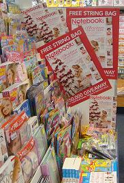 The visual merchandisers funded by magazine publishers can be frustrating sometimes – most often when they do a display promoting a title which is nowhere near the display. Take Notebook – as in the photo. Without proper management these posters could we far away from the title. With proper management they are nearby and more helpful to our goal for our shop.