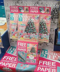 The sales value of the display for Better Homes and Gardens at the counter today was immediate. A customer came to the counter with the newspaper, saw the magazine and purchased it as well. BHG is that kind of title, easy to sell to people who come in to purcahse something else, especially at the weekend. Better Homes and Gardens gets this premium space at the counter this weekend thanks to the free sheet of wrapping paper inside the magazine as they offer each Christmas.