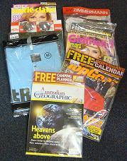 Thankfully, not all magazine publishers think the best gift to entice customers is an old copy of the same magazine. Right now on newsagent shelves we a good range of gifts available – sunglasses, a belt, a calendar, a bag, lipstick, a camping planner and, the best value gift of them all, a t-shirt. While the gifts are a challenge to display sometimes, they are an important part of the fix for the titles which carry them and for us. In our own stores we actively promote the gifts, as we should.