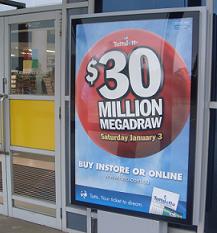 When I read signs, all that I would have gotten out of that advertisement is ‘MEGADRAW’, and ’30 Million’. That would remind me to buy a ticket and I’d quickly buy a ticket where ever I see the closest store before I forget. I’d forget by the time I get home. I wouldn’t have bothered with reading the rest unless I was sitting at the bus-stop and bored to death. I only buy online if I’m already at home and won’t be leaving home. Honestly- I prefer something tangible so instore is always my 1st preference.