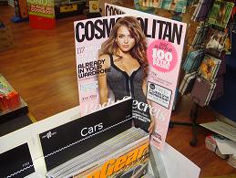 Many in-store magazine displays are visible from the front only, seeking attention from people walking into the newsagency. We have capped our Cosmopolitan display this week with a small display – three cover run ons stabled to create a three sided presenter – which makes the cover visible to customers walking from another section towards the counter. This gives Cosmopolitan greater visibility. Blokes leaving our bloke aisle will (may) see it. Ladies leaving our women’s aisle will see it – probably for the second time as they will have noticed the major display when walking in.