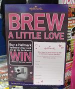 We are giving away a Sunbeam Espresso Machine for Valentine’s Day courtesy of the Hallmark alliance program. It is great to have a gift which one of our customers will win – this makes it more accessible than a state or national prize. The gift itself is a good change for Valentine’s Day. We are promoting the prize in the card department as well as at two positions at the counter.