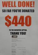 The photo shows one of the posters we have on display at Forest Hill showing the deposit slip for the first deposit of loose change collected from our customers. We are doing this in each of our stores – placing a copy of the deposit slip on display so our customers know the money has gone direct to the Red Cross Appeal account. We are not filtering this money through our account and therefore not making any claim on tax deductibility – nor should we.