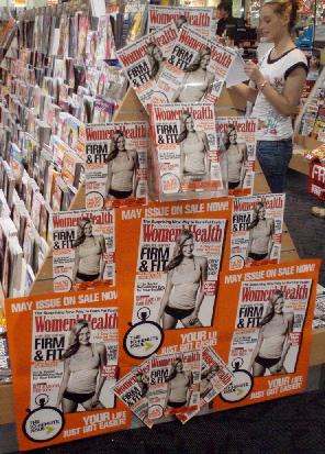 Further to my last post, here is another aisle end from our newsagency in Frankston – promoting the May issue of Women’s Health. Again, the customer can purchase off of the display. Also, the display covers the older magazine fixtures and gives the shop a brighter feel. I appreciate that some will argue that we should be paid extra for this in-store work. maybe we should. In the meantime we will continue to boldly display marketing collateral for titles which we know will respond to such in-store effort. Women’s Health is one such title. Every time we create a bold in-store display, sales lift.