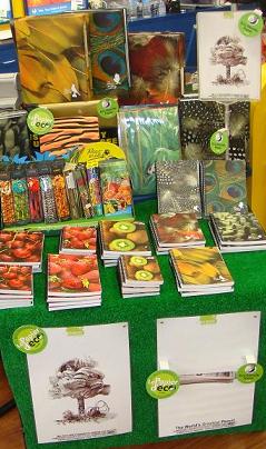 We have brought in a range of pencils, notebooks and other items with excellent green credentials. The pencils are made using recycled newspapers. The paper in the notebooks is made from sugarcane pulp. The manufacturer uses wasted pulp, a by product of sugarcane, to produce the paper in the notebooks.