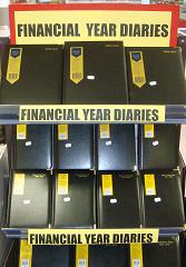 We have our Financial Year Diaries on sale on our dance floor, toward the front of the shop – between our newspaper stand and our counter. While we have regular customers who deliver good Financial Year Diary business, we are chasing the customer who has not come in with a Financial Year Diary purchase as their goal for the day. Our range, while not extensive, is good in terms of our demographic and what our sales history shows as working for us. We will move this display as we get closer to the end of June and depending on sales.