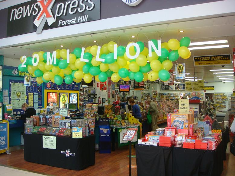 What is surprising is the comments from regular customers who had no awareness of Oz reaching $20 million. Oz is one of those games customers drift in and out of based on the jackpot level. Non-regulars take little notice of the posters we and other retailers put up each week charting the new jackpot. It has taken a string of balloons and a sign above the entrance to get their attention.