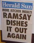Gordon Ramsay is in town and you can’t miss him – in the newspapers and on radio. I am disappointed that we don’t have magazines with Ramsay features to promote. A cover or two on the weeklies or on food titles would have worked a treat given his ability to grab headlines. Yep, a missed opportunity by editors. At least the editor of the Herald Sun understands the opportunity.