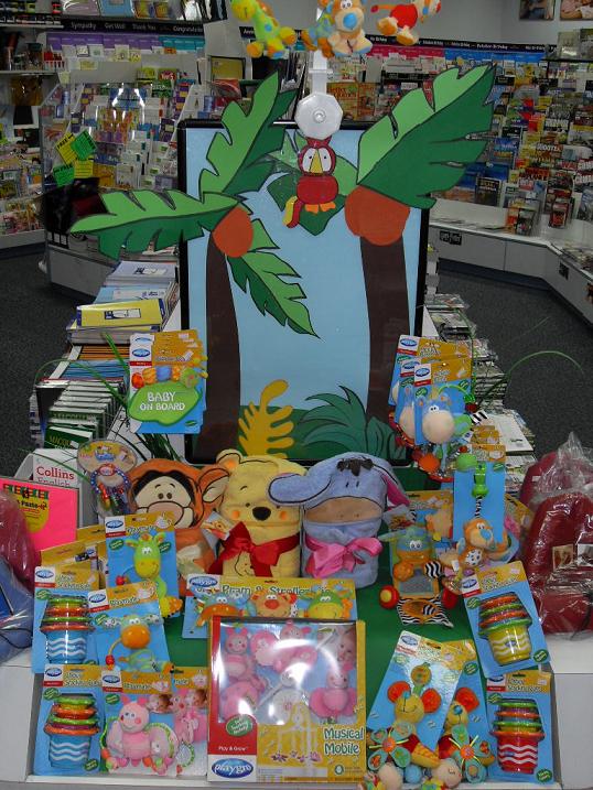 Click on this image to see the new June babies display in the same newsagency. Both displays are up at the same time. Baby gifts are the most consistent performing gift category. Creating a stunning visual display will deliver excellent sales results – as well as lift the visual appeal of the shop.