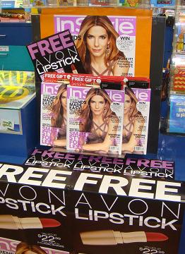 We are promoting InStyle magazine at the counter and featuring the gift of Avon lipstick valued at $22.99 which comes with every copy. The offer will suit our customers and is likely to be successful in this impulse location. Receiving a good mix and quantity of marketing collateral is key to creating a display which drives the sales result we want from InStyle.