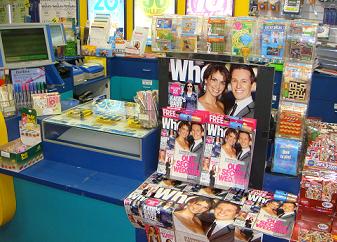 We are promoting Who magazine at the counter this weekend thanks to the free hair product gift and the coverage of the Rove McManus wedding. The photo shows how our counter display sits in context with the rest of the counter – our busiest non-lottery counter is to the right and our two lottery counters to the left. We’d expect Who to sell very well from here – it is an easy impulse purchase.