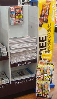 With space limited for magazine displays this week, we placed Woman’s Day next to the Herald Sun at our main newspaper stand. This location is our highest traffic spot in the newsagency next to the sales counter. It works for the coffee giveaway with Woman’s Day as we have been able to use the portrait poster quite effectively (we think at least).