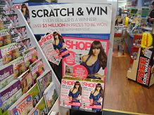 We are promoting Shop Til You Drop to our customers as they leave our women’s magazine aisle. This is on the back of an ACP magazine stand. We have been using this space for several months now with good success – most recently for Dolly. Even though gardening magazines are on the fixture to the left of the display, we are able to promote other titles on the display and drive sales.