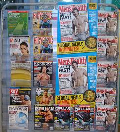 We are using the latest issue of Men’s Health magazine to anchor a promotion of titles which appeal to men. We are focusing on physical and mental fitness in the selection of titles. We have deliberately resisted the urge for breast centric titles this time around. Men’s Health is a good title for us but we know we can increase sales further – hence this display out the front of our newsagency.