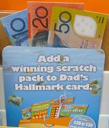 I like the collateral provided by Intralot promoting instant scratch tickets for Father’s Day – especially their pitch with the brand of greeting card we carry. This makes it easy for us to pitch scratchie gift packs with our cards. It is not often you see a supplier from one category complimenting a supplier from another category.