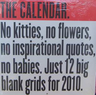 I love this calendar. It takes the piss out of pretty the majority of calendars we and other retailers have. It’s hilarious when you see it sitting in the rack next to calendars with cute kittens, babies, flowers and other warm images on their covers. I expect this calendar to sell very well.