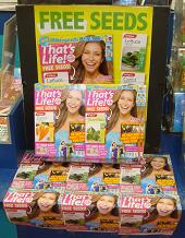 We are promoting That’s Life in our prime counter position from today, replacing New Idea (which has sold well with the free chocolate), because of the free seeds which come with this issue of the magazine.