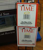 We are promoting Time magazine at our main nespaper stand this week. The ethical consumer cover story is something we feel will interest our customers. Time is one of those titles which needs to be featured when it has a good cover since it is not often a destination purchase – certainly in our newsagencies at least.