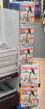 We are promoting Women’s Health next to our main newspaper stand this week. As the photo shows, we created the slim display by using the side of another display unit. It presents the title well.