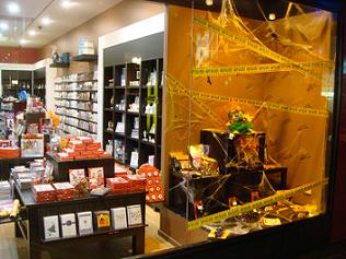 The team at our Sophie Randall store in Melbourne Central has used a lighting trick to wash the boxed window with orange for great effect for our small Halloween display. The photo shows the contrast of the display window and the general lighting in the shop. They placed a colour gel on front of the light for the window – a small and inexpensive trick which has delivered a high impact. The impact is evident in the number of customers who stop and look and the sales.