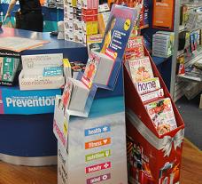 We have moved stands promoting the latest issue of Prevention, Better Homes and Gardens and Family Circle to the corner of the counter at our newsXpress Forest Hill store which customers approach as they leave our busiest magazine aisle – women’s titles. Both stands were located next to newspapers, a space now occupied by the ACP Magazines basket builder stand. This move will present all titles involved to new customers. It is part of our commitment to be always moving stock to combat store blindness. The stands will stay here for at least a week. we track success by counting stock in each pocket.