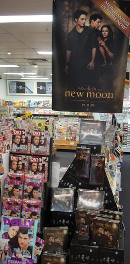 As I blogged yesterday, we don’t see enough of cross department promotion around national and international brands in newsagencies. These are opportunities ripe for the picking. new moon interest will reach fever pitch over the next seven days. While many newsagents will only cash in with magazine sales, we have products in two other departments.