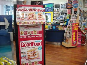 We are promoting the latest issue of Good Food magazine on the back of an ACP magazines basket builder stand. This display faces customers as they leave our stationery aisles. We also have the magazine in a pocket in the food coulmn with our women’s magazines and in our regular food title area. Good Food has done well for us – hence the co-location approach. We want to get our sales early in the on-sale period.