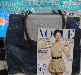 The free travel bag which comes with the latest issue of Vogue, on-sale today, is a challenge to display. It will not work in regular magazine fixturing so we are displaying it in a feature space. To me, Vogue is a destination purchase. I have no evidence to support this, it’s just a hunch. The large bag means that our regular Vogue customers may miss the title. The other challenge is that the magazine is in a plastic bag with the free travel bag. This will frustrate browsers who enjoy flicking through Vogue.