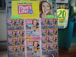 We are promoting the first issue of That’s Life for the year at the counter as well as with the display you can see in the photo – this is placed at the entrance of the shop as people approach our main lottery counter. That’s Life responds well to promotional displays, especially at holiday time when people have spare time on their hands. We will leave this display up until Friday when we will reassess use of the prime space based on sales.