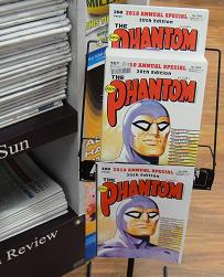 We are promoting the 20th annual special of The Phantom (out today) next to our main newspaper stand. While a true special interest title, I suspect that we will attract sales from people not shopping with us looking for The Phantom – hence the placement at the newspaper stand. We will leave this in place for a week.
