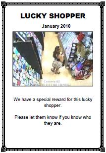 We have taken advice done some research and decided to post this in our stores. The wider the coverage the better we figured. The poster is near the entrance – in an obvious location. We know of several businesses who would be happy to identify this shopper. Click on the image or here for a large version.