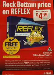 Mark, I think your off here. Big W for the past 18 months have been hovering around the $5 price point for reflex. The add for Aussie post also states that to get free delivery you have to purchase $50 of goods. Yes they can offer free delivery and not really suffer any great pain.