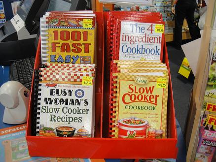 Four cookbooks feature on the counter at our Forest Hill store this week as our key counter offer. They deliver the margin we want from counter offers. This is why offers like this will take precedence over lower margin product suppliers ask us to take. The books also present as a compelling impulse offer. We will leave the four cookbooks here for two weeks before deciding on the next move. We sourced these through our relationship with ABW.