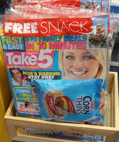 We are promoting Take 5 at the counter this week. The free pack of Corn Thins encourages us to do more than just place it on the shelf. we’re tight on space so stole some bag rail space. We’ll leave this up until the weekend if stock lasts. While this issue is a challenge to display, the free gift is one I;d expect to connect with Take 5 customers.