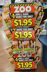 Krystal Forscutt has been a star on the pages of Zoo magazine for the last three to four years. The cover of this week’s issue proclaims it’s her last time in the magazine. We are promoting this issue, and its discounted cover price, at the exit of the men’s magazine aisle. This display, the price cut and Krystal’s last appearance should generate incremental business.