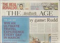 Newspaper covers the front page ·March 1, 2010 ·Mark Fletcher ·0 Comments The Age newspaper today covered half the front page with a house ad. This was obviously deemed more important to the company to the newspaper than the lead story of the day to the readers. Pity. 0 likes newspaper masthead desecration Leave a Reply Cancel replyYour email address will not be published. Required fields are marked *Name * Email * Website Enter Code * Captcha Comment * Δ Post navigation Next ArticlePrevious Article