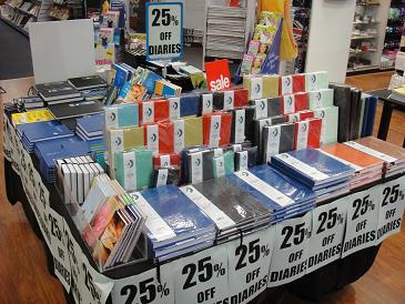 We are offering diaries at 25% off in one of our newsagencies to move stock and free space. Plenty of what is shown in the photo was purchased at a substantial discount off wholesale for this move so the margin is excellent. We have had an excellent diary season so far and indications are that this will continue for some time. The 25% off will kick that up – attracting traffic and building basket efficiency. Our current plan is to run this sale for a couple of weeks before moving back to full price.