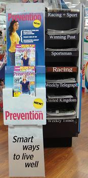 Realising the importance of promoting impulse opportunities as shoppers move through the store and knowing the demographic of our card shoppers, we have placed Prevention magazine facing the card department. This is the only magazine offer between the card department and the counter.