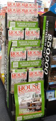 We are promoting House and Garden at the entrance to our women’s magazine aisle this week as part of the ACP Connections promotion. While not your usual billboard display, we have found this type of display to work well for us. Customers face it as they head to our busiest magazine aisle. It is also seen as people turn from our newspaper display and heads to the counter.