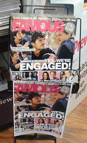 We have found that Famous magazine sells well on impulse with newspapers – hence the small stand we setup yesterday morning to run for a couple of days this week. This simple display using a copy of the front cover works well with a few titles so we try and give fair representation to publishers with the space.